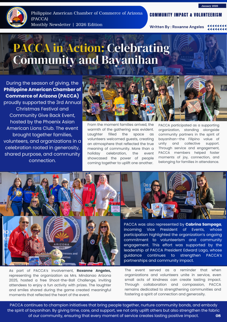 During the season of giving, the Philippine American Chamber of Commerce of Arizona (PACCA) proudly supported the 3rd Annual Christmas Festival and Community Give Back Event, hosted by the Phoenix Asian American Lions Club. The event brought together families, volunteers, and organizations in a celebration rooted in generosity, shared purpose, and community connection.